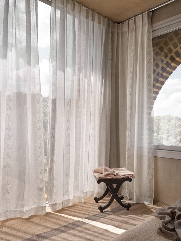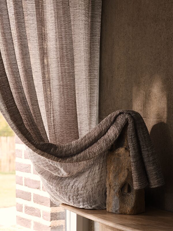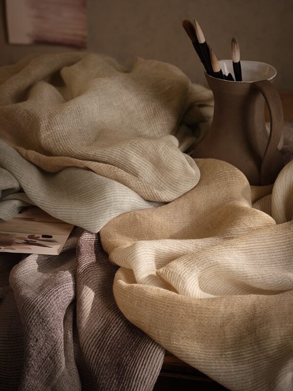 Each weave reflects nature’s raw elegance, with colours drawn from scorched earth, golden sands, and the soft hues of dawn and dusk. Crafted from natural fibres including superfine linen, linen-wool, and linen-alpaca blends, the collection offers everything from airy sheers to robust upholstery. With exceptional drape, distinctive texture, and a tactile hand, Raw Echo invites calm and connection through the elemental power of nature.